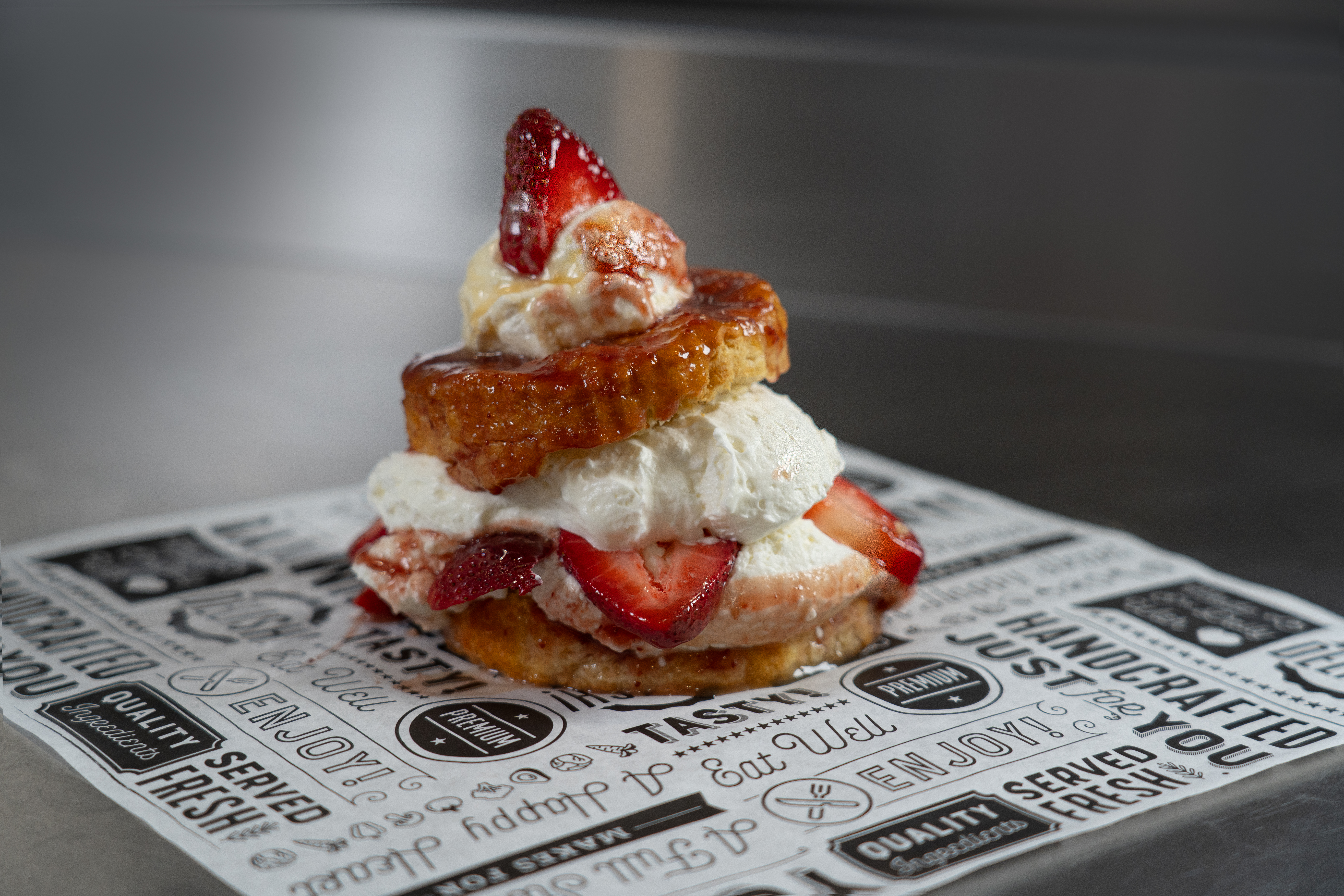 The best strawberry shortcake you'll ever eat. Fresh strawberries in homemade whipped cream made one batch at a time. Topped with bussin sauce. So so right!